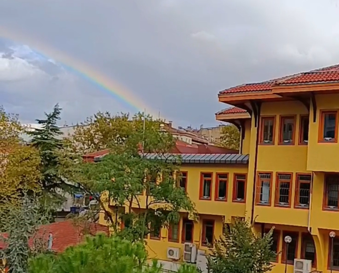 Gökdere boyunca uzanan gökkuşağı, tarihi dokusu ve doğal güzelliğiyle ünlü Setbaşı bölgesine farklı bir atmosfer kattı. Gün batımının sıcak tonlarıyla birleşen renkli manzara, hem amatör fotoğrafçılara hem de şehir sakinlerine unutulmaz anlar yaşattı.