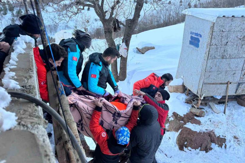 Kahramanmaraş’ta yoğun ve olumsuz hava şartları nedeniyle mahsur kalan hasta 18 saatlik çalışmayla kurtarıldı.