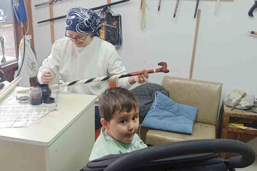 20 yıllık Fatime usta bir eliyle torun sallıyor, diğer eliyle dünyaca ünlü bastonlara şekil veriyor