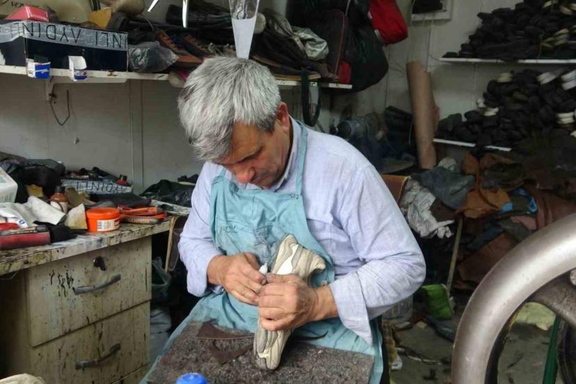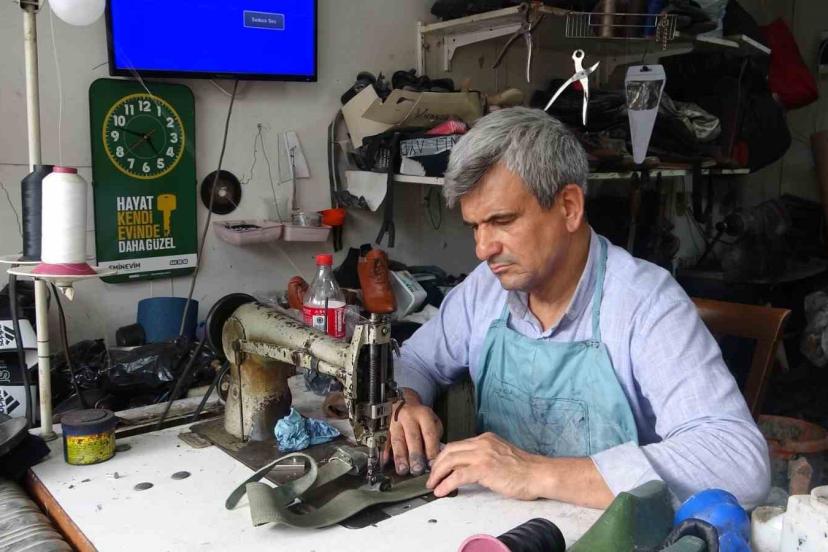 Hatay’da 6 yaşındayken babasının yanında çırak olarak ayakkabıcılık sektörüyle tanışan 54 yaşındaki Ahmet Kavi, depremin ardından açtığı prefabrik iş yerinde mesleğini sürdürüyor. Uzun yıllardır eski ayakkabıları tamir eden Kavi, her sabah ‘Bismillah’ diyerek açtığı iş yerinde sabrı ve mesleğine olan tutkusuyla gençlere örnek oluyor.