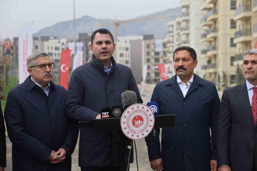 Yıl sonu itibariyle 454 bin konuttan fazlasını deprem bölgesinde hak sahiplerine teslim etmeyi planlandıklarını belirten Bakan Kurum, "Depremin ilk anından itibaren; şehrimizin yaralarını sarmak için gece gündüz demeden çalışıyoruz. Saatte 23, günde 550 konut üreterek dünyada eşi benzeri görülmemiş bir inşa seferberliği yürütüyoruz. Hamdolsun, ortaya koyduğumuz kararlılık sayesinde bugün; 11 ilimizin tamamında artık, neredeyse tüm evlerimizde ışıklar yanmaya başladı. Son anahtarları teslim ediyor, kalan son ailelerimizi de yeni yuvalarıyla, mutlu, huzurlu, güvenli gelecekleriyle buluşturuyoruz. Bildiğiniz gibi geçtiğimiz ay Adıyaman’da, Cumhurbaşkanımızın teşrifleriyle 350 bininci konutu, hak sahipleriyle buluşturmanın mutluluğunu yaşamıştık. İnşallah bu ay sonunda Hatay’da; 153 bin konutumuzun tamamını afetzede kardeşlerimize teslim etmiş olacak; buradaki sözlerimizi tamamen yerine getirmiş olacağız. Hemen ardından da 27 Aralık’ta; Cumhurbaşkanımızın teşrifleriyle, son anahtar teslim törenimizi büyük bir gurur ve huzurla yapacağız. Deprem bölgesindeki 11 ilimizde; yılsonu hedefimiz olan 453 bin konutumuzun çok daha fazlasını sahiplerine kavuşturacağız" dedi.