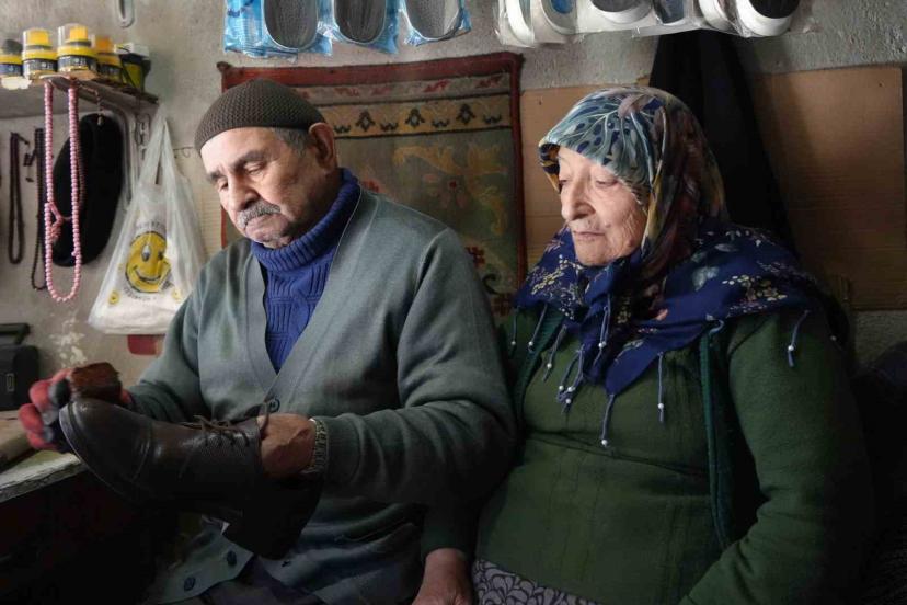64 yıllık ayakkabı tamircisi, her sabah dükkanını eşiyle açıyor