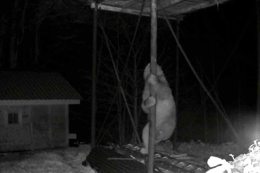 Rize’nin Hemşin ilçesine bağlı Mutlu Mahallesi’nde kış uykusundan uyanarak yiyecek bir şeyler arayan ayı yerden yüksekte kurulan kovanların konulduğu standı keşfetti. Şefik İnce’ye ait kovanların altında bir keşif yapan ayı demire tırmanarak kovanlara ulaşmaya çalıştı ancak bunda başarılı olamadı.
