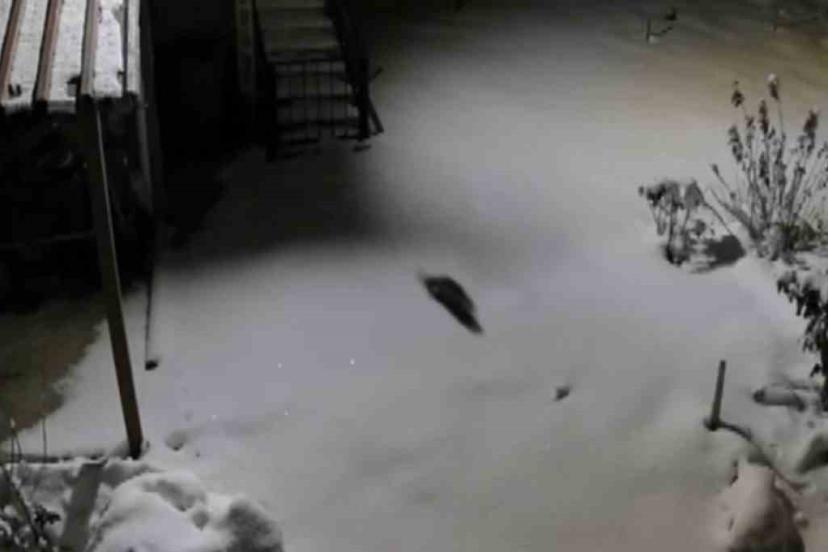 Güvenlik kamerasına saniye saniye yansıyan o anlarda sansarın kar üzerinde hızlı ve temkinli adımlarla ilerlediği, etrafı koklayarak yiyecek bir şeyler aradığı ve ardından gözden kaybolduğu görüldü.
