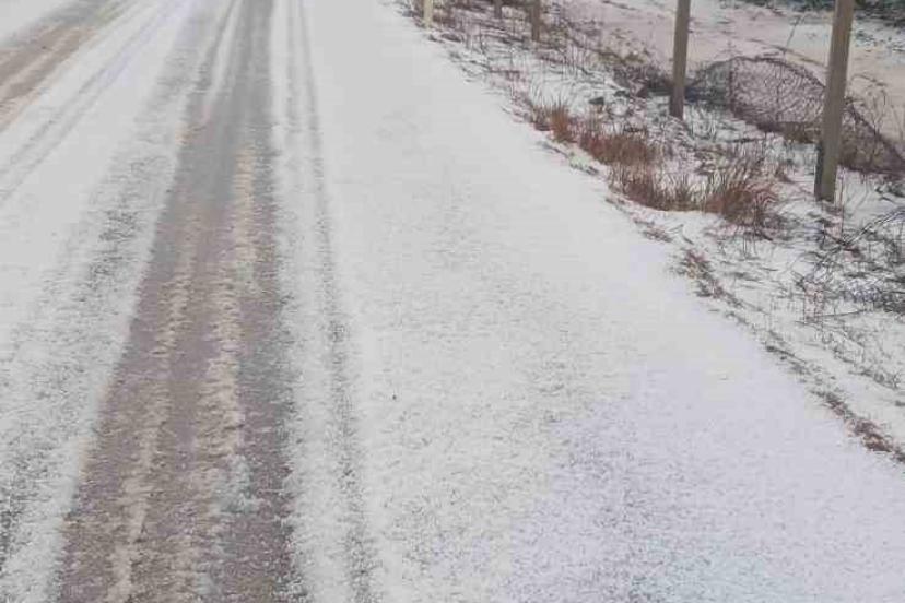 Adana’nın Karataş ilçesinde yağan dolu, yolları ve tarlaları beyaza bürüdü.