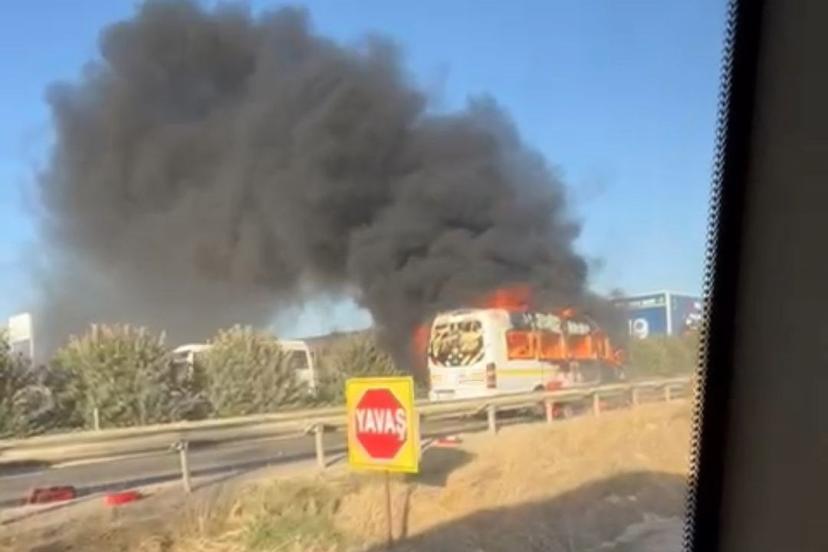 Adana’da öğrenci servisi alevlere teslim oldu. Öğrenciler servisten tahliye edildi.