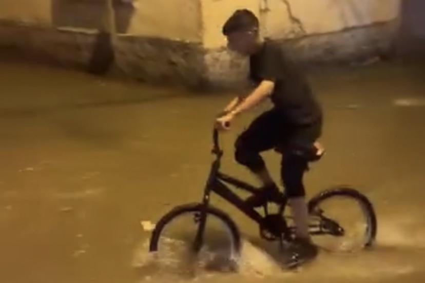 Öte yandan yoğun yağış altında bir çocuğun bisiklet sürerek eğlendiği anlar dikkat çekti. Yağışın yarın akşam saatlerine kadar devam etmesi bekleniyor.