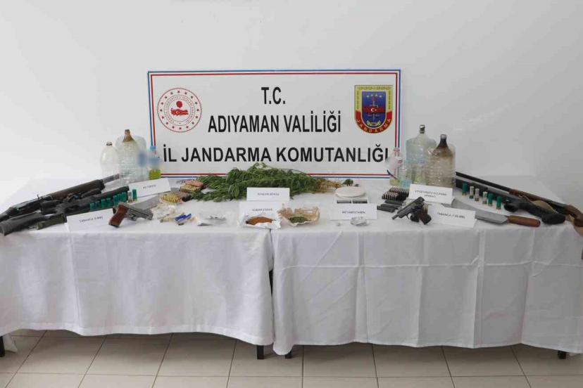 Adreslere yapılan şafak operasyonunda 51 gram kubar esrar, 3 gram sentetik kannabinoid hammaddesi, 25 gram sentetik kannabinoid, 2 gram metamfetamin, 14 kök kenevir bitkisi, 1 hassas terazi, 21 adet uyuşturucu kullanma aparatı, 1 adet 9 mm ruhsatsız tabanca, 1 adet 7.65 mm ruhsatsız tabanca, 107 adet 7.65 mm tabanca fişeği, 221 adet 9 mm tabanca fişeği, 5 adet tabanca şarjörü, 1 adet yarı otomatik av tüfeği, 1 pompalı tüfek, 1 adet tek kırma tüfek, 12 adet av tüfeği fişeği, 44 adet kurusıkı tabanca fişeği, 1 muşta ve 2 kama ele geçirildi. Ele geçirilen malzemeler muhafaza altına alınırken Gölbaşı ilçesinde 7 şüpheli şahıs, Doğanşehir ilçesinde 4 şüpheli şahıs olmak üzere toplam 11 kişi gözaltına alındı. Gözaltına alınan şahıslar, sorgulanmak üzere jandarma komutanlığına götürüldü.