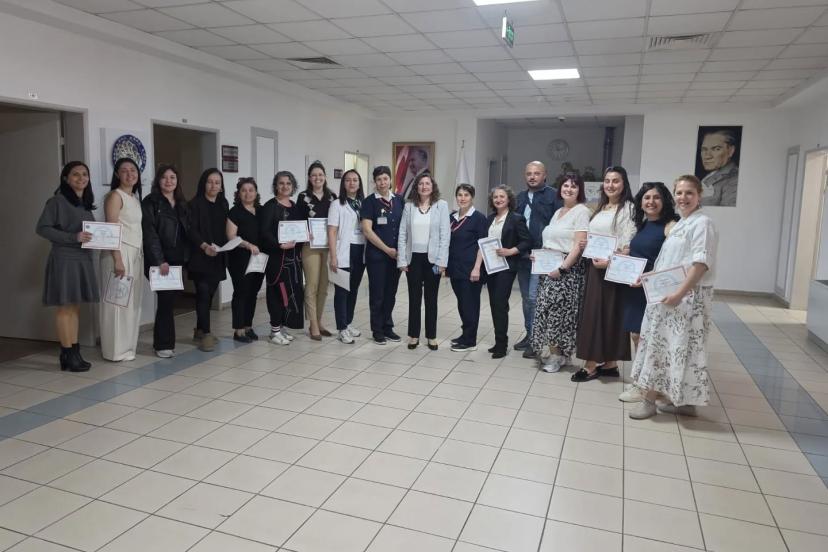 23 Mart 2026 ile 21 Nisan 2026 tarihleri arasında gerçekleştirilen eğitim programı kapsamında, katılımcılara alanında uzman eğitmenler eşliğinde teorik ve uygulamalı eğitimler verildi. Program ile sağlık personelinin mesleki bilgi ve becerilerinin artırılması hedeflendi. Eğitim süreci, Başhekim Yardımcısı Hilal Bektaş Uysal’ın katılımıyla gerçekleştirilen sertifika takdim töreni ile sona erdi. Törende programa katılan sağlık çalışanlarına sertifikaları takdim edildi. Yetkililer, sağlık hizmetlerinin niteliğini artırmaya yönelik düzenlenen bu tür eğitim programlarının, hem mesleki gelişime hem de hasta bakım kalitesine önemli katkılar sunduğunu belirtti. Programa katılan sağlık profesyonellerine teşekkür edilerek, meslek hayatlarında başarılarının devamı temenni edildi.