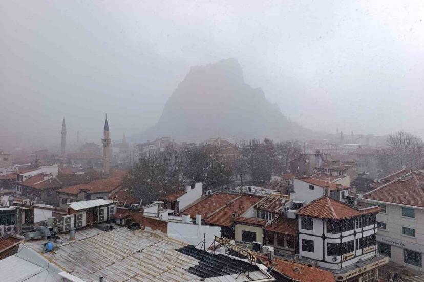 Meteorolojinin uyarıları sonrası Afyonkarahisar’da beklenen kar yağışı öğle saatlerinde başladı.