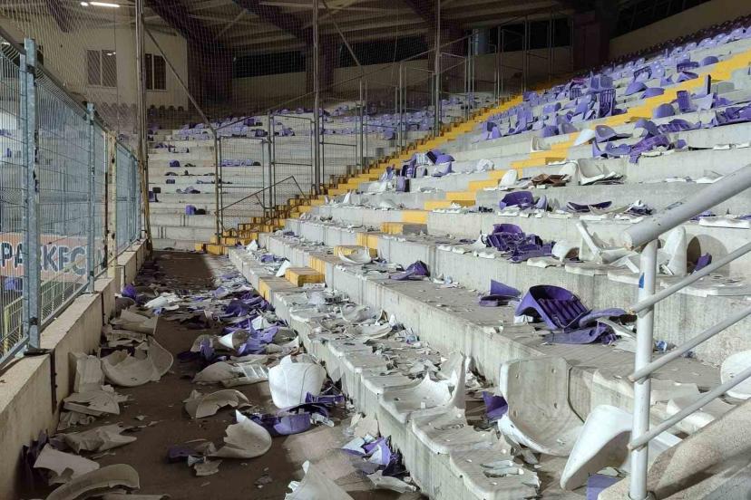 Afyonkarahisar’da oynanan Afyonspor-Eskişehirspor maçı sonrası yaşanan tribün olaylarında 2 bine yakın koltuk yerinden sökülerek sahaya atıldı.