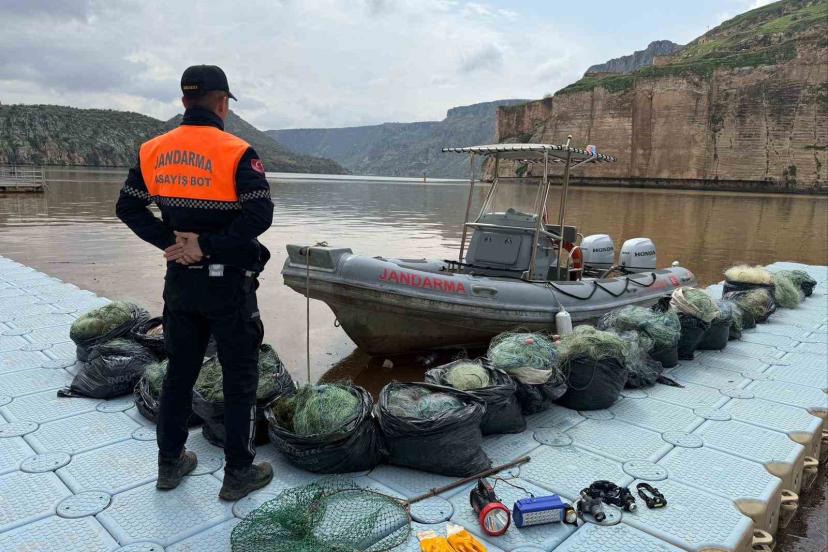 Gaziantep İl Jandarma Komutanlığı Asayiş Bot Timleri, Yavuzeli ilçesi Fırat Nehri’nde önleyici kolluk devriyesi icra etti. Önleyici kolluk devriyesi esnasında yasak olmasına rağmen nehir üzerine 2 bin 200 metre ağ atarak balık avladığı tespit edilen M.H.S., R.A., M.E., M.Ö. ve E.S. isimli şahıslar yakalandı.