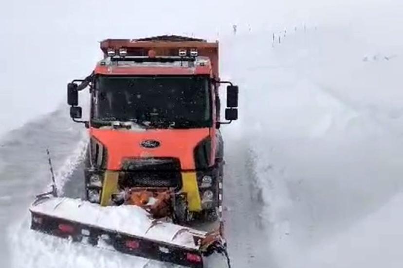 Ağrı-Kağızman kara yolunda etkili olan yoğun tipi nedeniyle bazı bölgeler ulaşıma kapanırken, ekipler yolu açık tutabilmek için çalışmalarını sürdürüyor.