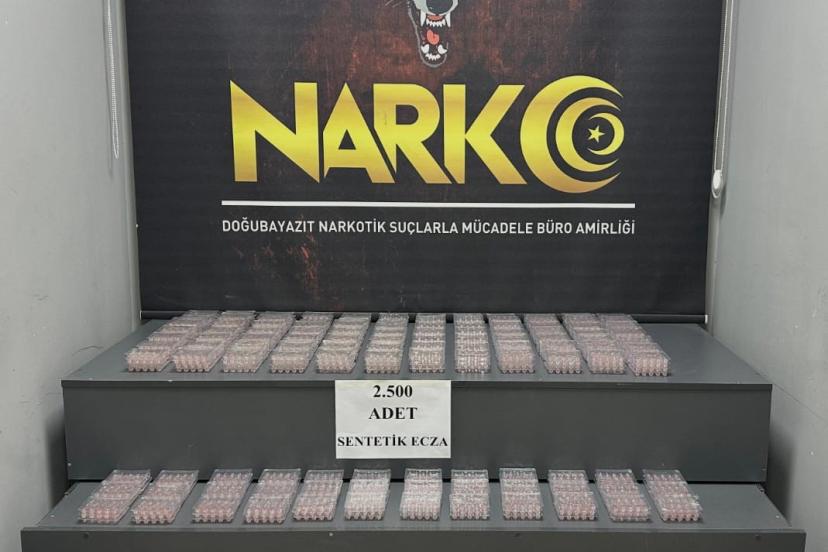 Ağrı İl Emniyet Müdürlüğü ekiplerince yürütülen çalışmalar kapsamında Doğubayazıt ilçesinde yabancı uyruklu bir şahsın kullandığı tır ve dorsesinde arama yapıldı. Yapılan aramalarda toplam 2 bin 500 adet sentetik ecza maddesi ele geçirildi.