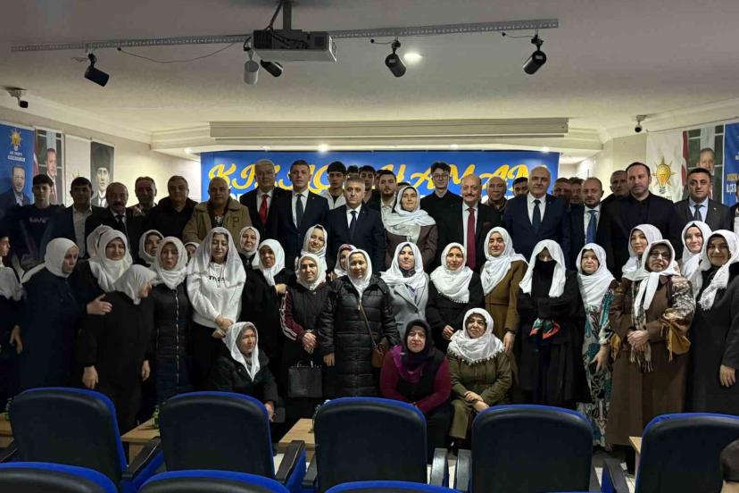 AK Parti Kızılcahamam Danışma Meclisi’nde Ak Parti Kadın Kolları Başkanı Naime Gümüş ve yönetimi, beyaz başörtü takarak Mihal...