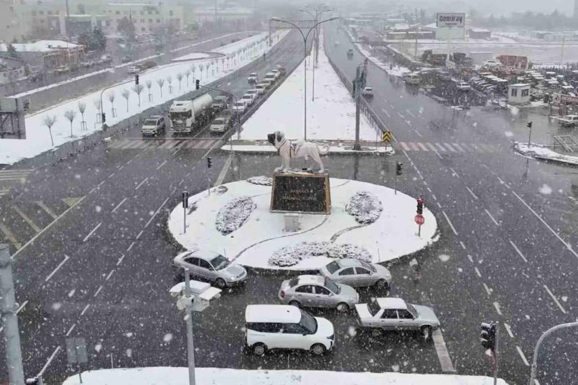 Aksaray’da akşam saatlerinde başlayan kar yağışı şehri beyaza bürüdü.