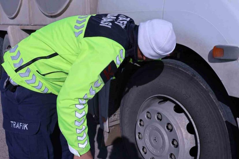 Aksaray’da jandarma ekipleri kent genelinde birçok noktada kış lastiği denetimi gerçekleştirdi.