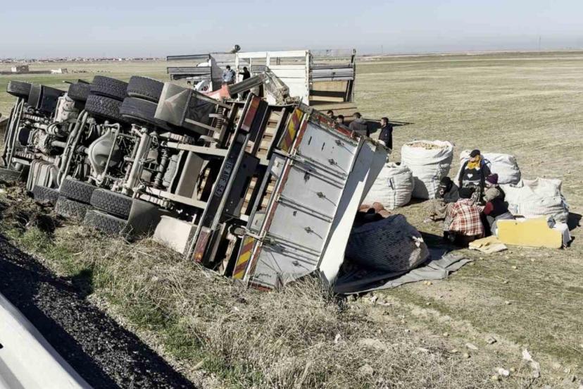 Kaza, Aksaray - Konya kara yolunun 19. kilometresinde meydana geldi. Edinilen bilgiye göre, Aksaray’dan Konya istikametine seyreden 57 yaşındaki Mehmet B. idaresindeki 15 ABF 547 plakalı kamyon, sürücünün direksiyon hakimiyetini kaybetmesi sonucu bariyere çarptıktan sonra şarampole devrildi. Kazada sürücü yaralanırken diğer araç sürücüleri durumu 112 Acil Çağrı Merkezine bildirdi. İhbar üzerine olay yerine polis ve sağlık ekibi sevk edildi. Kısa sürede olay yerine gelen sağlık ekipleri yaralı sürücüye ilk müdahaleyi ambulans içinde yaptı. Polis ekipleri yolda güvenlik önlemi alırken, yaralı sürücünün sağlık durumunun iyi olduğu öğrenildi. Dökülen patatesler ise sürücünün yakınları tarafından toplanarak başka bir kamyona yüklendi.