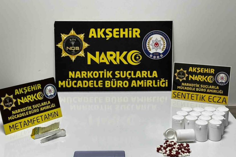 Edinilen bilgiye göre, Akşehir İlçe Emniyet Müdürlüğü ekipleri tarafından yürütülen çalışmalar kapsamında şüpheli F.D. yakalandı. Şüphelinin üzerinde ve bulunduğu yerde yapılan aramalarda 15 kutu içerisinde toplam 800 adet uyuşturucu hap, bir miktar metamfetamin ile uyuşturucu madde kullanma aparatı ele geçirildi. Gözaltına alınan F.D., emniyetteki işlemlerinin ardından adliyeye sevk edildi. Şüpheli, çıkarıldığı nöbetçi mahkemece tutuklanarak Akşehir Cezaevi’ne teslim edildi.