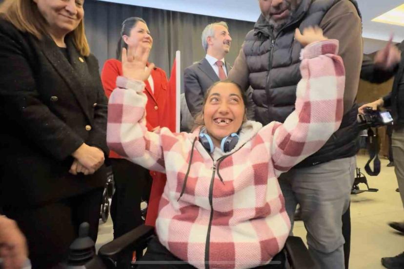 Edirne’de akülü sandalye hediye edilen 21 yaşındaki engelli birey Hazal Kara’nın sevinç çığlıkları ve gözyaşları duygu dolu anlar yaşattı.