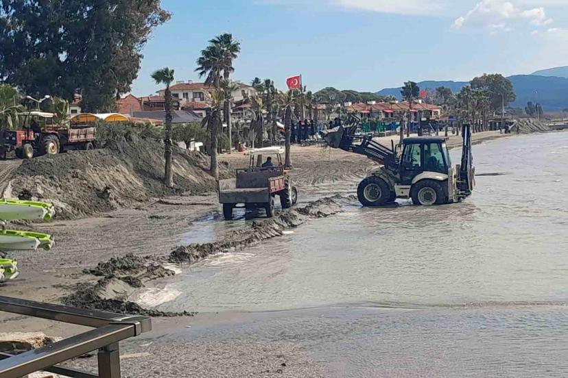 Yaklaşık 250 metre uzunluğundaki sahilde başlatılan çalışmalarda iş makineleri ve traktörler görev alıyor. Ekipler, kıyıya yakın bölgelerde biriken kumları toplayarak yeniden sahil hattına taşıyor.