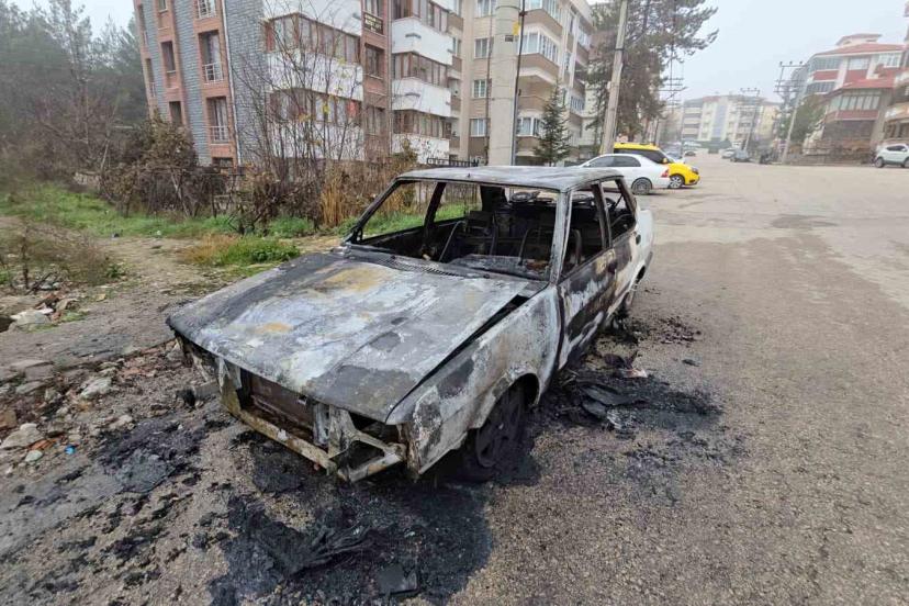 Karabük’ün Safranbolu ilçesinde park halindeyken alev alan ve tamamen yanarak kullanılmaz hale gelen otomobilden geriye yalnızca demir yığını kaldı.