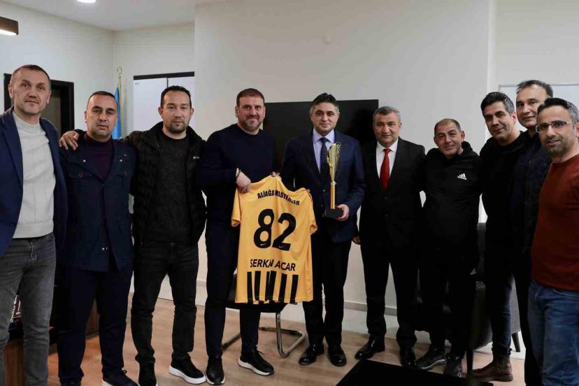 Başkan Acar’a spora ve sporcuya verdiği desteklerden dolayı teşekkür eden Akyüz, "Sezonu şampiyon tamamlamanın gururunu yaşıyoruz Aliağa’nın spor kültürünü güçlendirmek ve her yaşta spor yapılabileceğini göstermek amacıyla çalışmalarımız sürüyor. Hedefimiz Ege Bölgesi finallerinde şampiyonluk ve Aliağa’yı iyi temsil etmek "dedi. Başkan Serkan Acar’a 82 numara ve üzerinde ismi yazılı özel forma hediye edildi. Başkan Serkan Acar, Aliağa’da sporun her branşta gelişmesini önemsediklerini belirterek, masterler liginde elde edilen başarının kent adına gurur verici olduğunu ifade etti. Ayrıca takıma finallerde başarılar diledi.