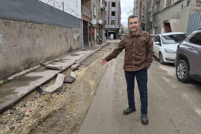 Yaklaşık 15 yıldır sokak üzerinde esnaflık yapan Murat Demir, "Birkaç ay önce burada elektrik kablolarının yeraltına alınması ile ilgili bir çalışma yapıldı. Ama gördüğünüz gibi sokak sular içinde. Kaldırımlarımız kepçe marifetiyle yıkıldı. Burası yaklaşık 2 aydır böyle. Çevreye saçılan kaldırım taşları sebebiyle lastiğimiz patlayacak diye araçlarımızı park edemiyoruz. Kazdıkları yerlere doğru dürüst toprak bile doldurmadılar. Ayrıca, sokağımız şan dolmuşlarının geçiş noktası ancak burası böyle kendi haline terk edildi. Kimi arayacağımızı bilmediğimiz için ilgili kurumlarla da irtibat kuramadık. Bu yolların bir an evvel yapılmasını bekliyoruz. Kışın sudan, çamurdan geçilmiyor; yaz geldiğinde de toz toprak olacak. Büyükşehir’e yakışmayan bir görüntü" dedi.