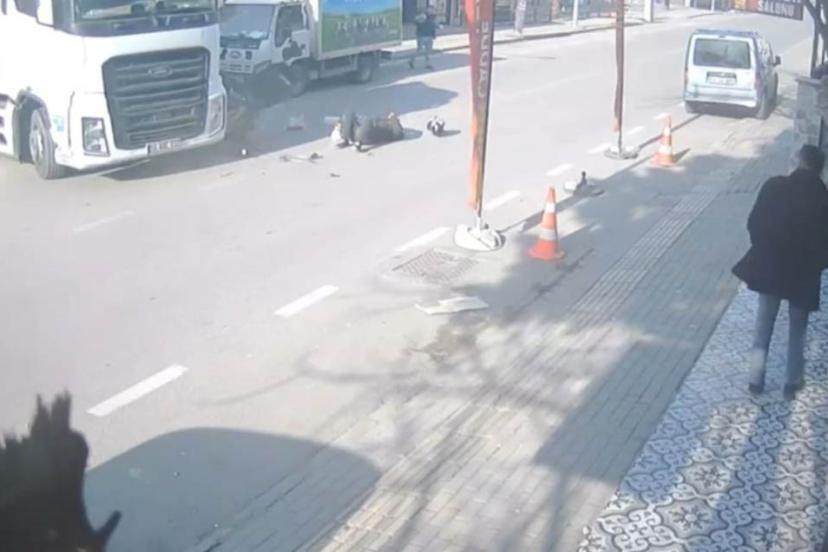 Kaza, merkez Osmangazi ilçesinde meydana geldi. Edinilen bilgiye göre, seyir halindeki motosiklet ara sokaktan anayola çıkan tırla çarpıştı. Kazanın şiddetiyle motosiklet sürücü düşerek yaralandı. O anlar çevrede bulunan bir iş yerinin güvenlik kamerasına yansıdı.