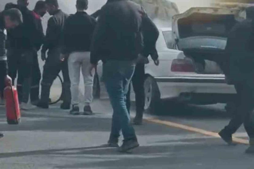 Ankara - Konya kara yolu Kepekli mevkiinde BMW marka bir otomobil seyir halindeyken bilinmeyen bir nedenle arızalanarak yanmaya başladı. Çevredekilerin müdahalesiyle yangın kontrol altına alınırken, o anlar cep telefonu kamerasına yansıdı.