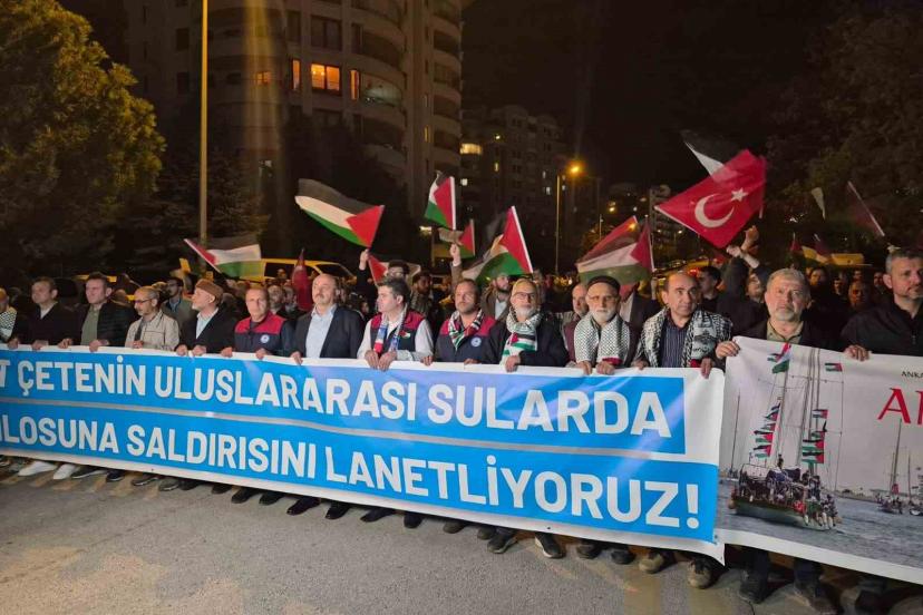 Amerika Birleşik Devletleri (ABD) Büyükelçiliğinin önünde İsrail’in Sumud Filosuna yönelik müdahalesi protesto edildi.