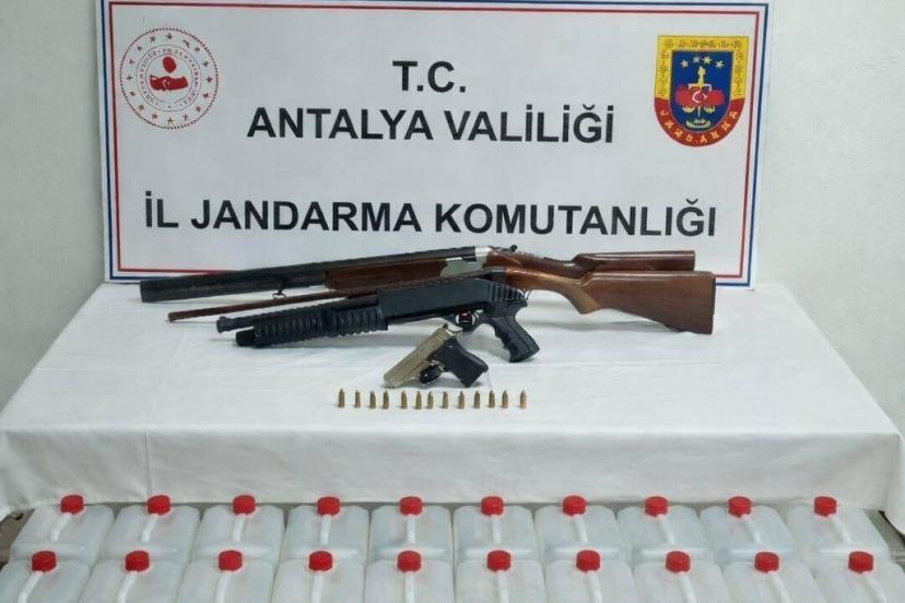Antalya’da 160 litre etil alkol, tabanca ve pompalı tüfek ele geçirildi