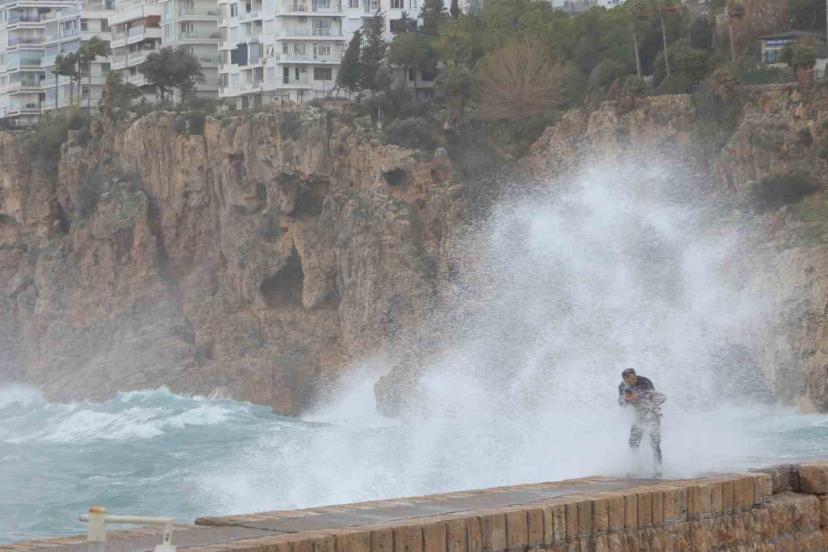 Şiddetli rüzgar nedeniyle denizde oluşan kuvvetli dalgalar yaklaşık 30 metrelik falezleri dövdü. Dalgaların falezlerle buluşması sırasında zaman daman dalgalar 20 metre yüksekliğe ulaşırken görsel şölen oluşturdu. Yat Limanı’nda bulunan mendirekte fotoğraf çekilmek isteyen bir vatandaş vuran dalga nedeniyle ıslandı. Konyaaltı Sahili’nde ise fırtınaya aldırış etmeyen bazı vatandaşlar ve turistler sahilde fotoğraf çekilerek dalgaların sahile vurmasını izledi. Vatandaşlar sert dalgalar nedeniyle kimi ıslanma tehlikesi geçirdi.