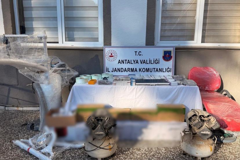 Antalya İl Jandarma Komutanlığı ekipleri tarafından Manavgat Cumhuriyet Başsavcılığının talimatıyla kaçakçılık suçlarıyla mücadele kapsamında yürütülen çalışmalarda, diplomasız olarak diş tedavisi yaptığı tespit edilen bir şüpheliye yönelik operasyon düzenlendi. Manavgat ilçesinde gerçekleştirilen faaliyetlerde, H.Ö. isimli şüphelinin gümrük işlemlerine tabi tutulmadan yurda getirilen cihazlarla diş tedavisi yaptığı belirlendi. Şahsa ait iş yerinde yapılan aramada 1 adet diş ünitesi, 2 adet kompresör ve 5 bin 980 adet kaçak ve sahte diş tedavisinde kullanılan anestezi ile sağlık malzemesi ele geçirildi.