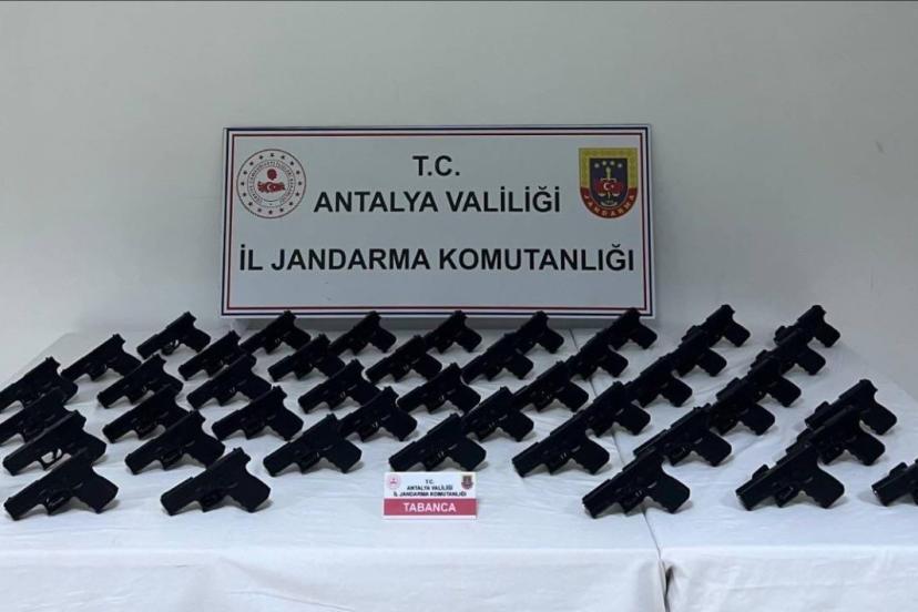 Antalya İl Jandarma Komutanlığınca yürütülen çalışmalar kapsamında, Serik Cumhuriyet Başsavcılığı talimatları doğrultusunda silah kaçakçılığı yaptığı tespit edilen şüphelilere yönelik operasyon gerçekleştirildi. Ekiplerce yapılan takip ve araştırmalar sonucunda, Serik ilçesinde ateşli silahlarla işlenen bazı olaylarda kullanılan tabancaların ticaretini yaptığı belirlenen bir şüpheliye ait araç durduruldu. Araçta yapılan aramada 45 adet Glock marka 9 mm ruhsatsız tabanca ile 45 adet tabanca şarjörü ele geçirildi. Şüpheli gözaltına alınırken, olayla ilgili adli tahkikatın devam ettiği bildirildi.