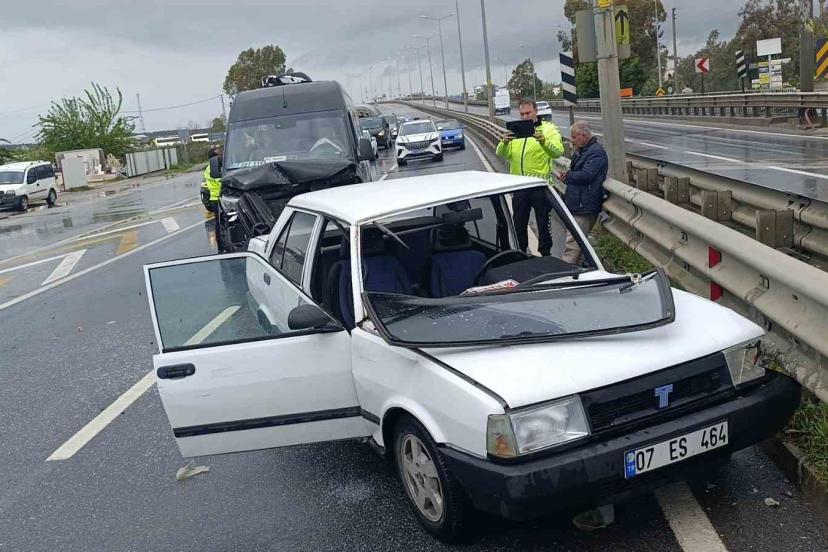 Antalya’nın Manavgat ilçesinde D-400 Karayolu üzerinde tur minibüsü ile ters yönde ilerleyen otomobilin çarpıştığı kazada oto...