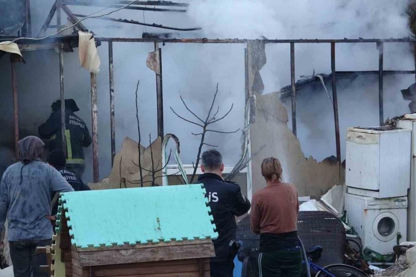 Antalya’da konteyner ev alevlere teslim oldu: 2 kedi telef oldu