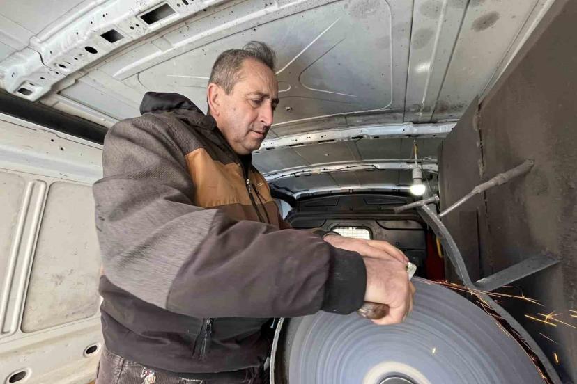 Arabası atölyesi oldu: Bıçakçı 35 yıldır Trakya’da bıçak biliyor