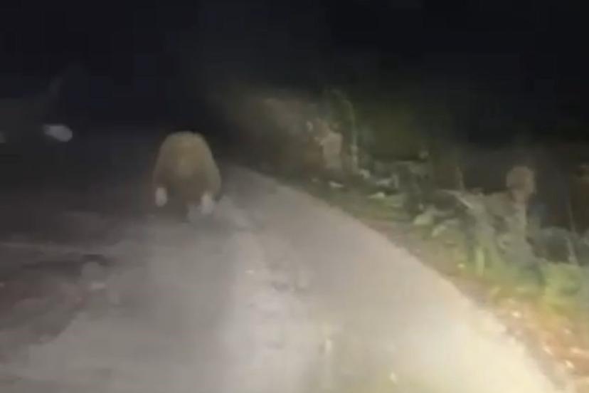 Aracın ışıklarından korkan ayı böyle kaçtı