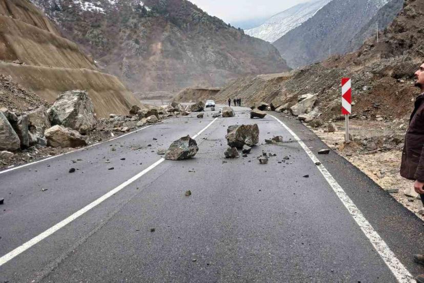 Artvin-Şavşat Karayolu’nun 25. kilometresinde heyelan meydana geldi. Yamaçtan kopan toprak ve kaya parçaları karayoluna düşerek ulaşımı kısa süreliğine aksattı.