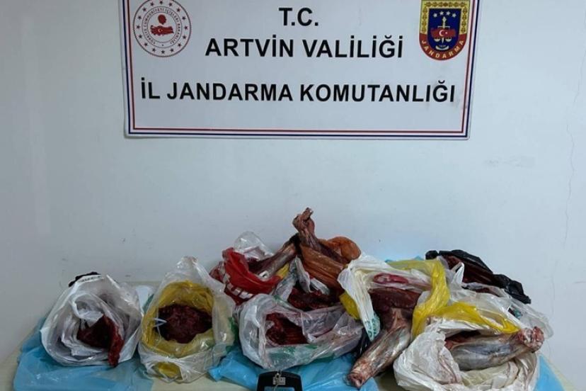 Artvin’de jandarma ekiplerince yapılan kontrolde 60 kilo yaban domuzu eti ele geçirilirken, yabancı uyruklu kişiye 34 bin 638 TL idari para cezası uygulandı.