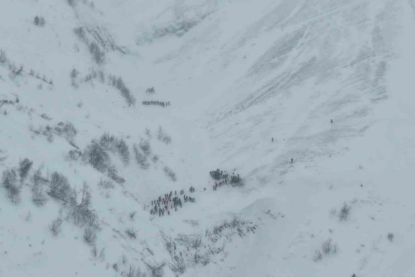 Zorlu arazi şartlarına rağmen sürdürülen arama kurtarma çalışmaları drone ile havadan görüntülenirken, görüntülerde ekiplerin karla kaplı geniş alanda titizlikle arama yaptığı görüldü.