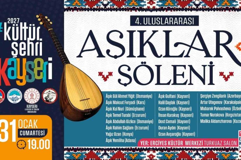 Kayseri Büyükşehir Belediyesi ve Kayseri Valiliği iş birliğinde Kayseri 4. Uluslararası Âşıklar Şöleni düzenleniyor. 31 Ocak Cumartesi günü saat 19.00’da Erciyes Kültür Merkezi’nde düzenlenecek şölende 7 şehir ve 5 ülkeden âşıklar, Kayserilileri mest edecek.