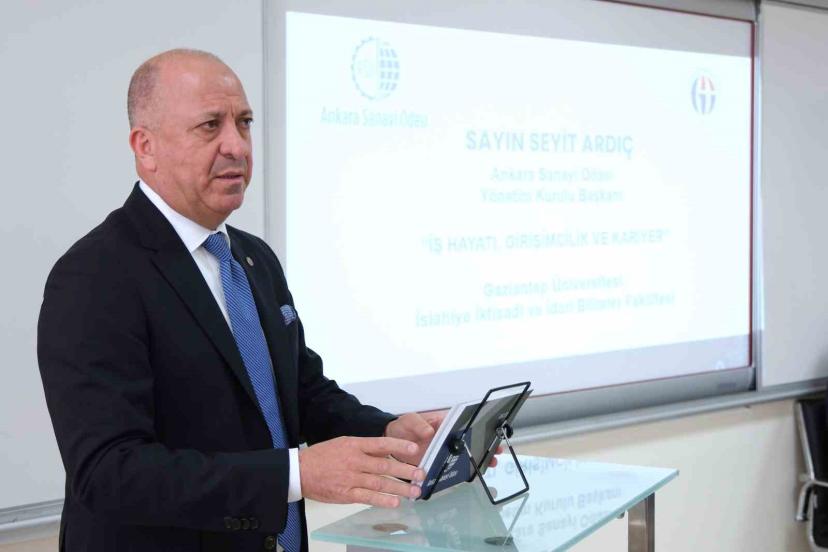 ASO Başkanı Seyit Ardıç, Gaziantep Üniversitesi İslahiye İktisadi ve İdari Bilimler Fakültesi’nde düzenlenen ’İş Hayatı, Girişimcilik ve Kariyer’ söyleşisinde üniversite öğrencileriyle buluştu. 6 Şubat depremlerinin en ağır etkilerinin hissedildiği bölgelerden biri olan İslahiye’de gençlerle buluşmaktan duyduğu memnuniyeti dile getiren Başkan Ardıç, zorlu süreçlere rağmen gençlerin ortaya koyduğu azim ve kararlılığın geleceğe dair umutları güçlendirdiğini belirtti.