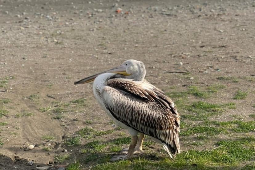 Atakum sahilinde görülen pelikan, bir süre sahilde kaldıktan sonra gözden kayboldu.