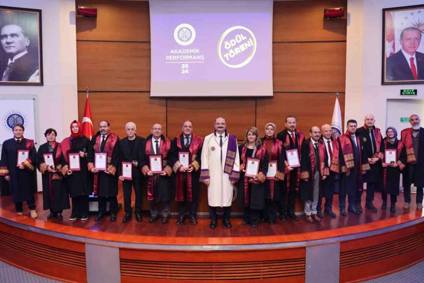 Atatürk Üniversitesi tarafından araştırma, eğitim, toplum, spor, sanat ve kurumsal gelişim misyonlarına sundukları nitelikli katkılarla öne çıkan akademisyenleri onurlandırmak amacıyla düzenlenen 2024 yılı akademik performans ödül töreni, Rektör Prof. Dr. Ahmet Hacımüftüoğlu’nun katılımıyla gerçekleşti.