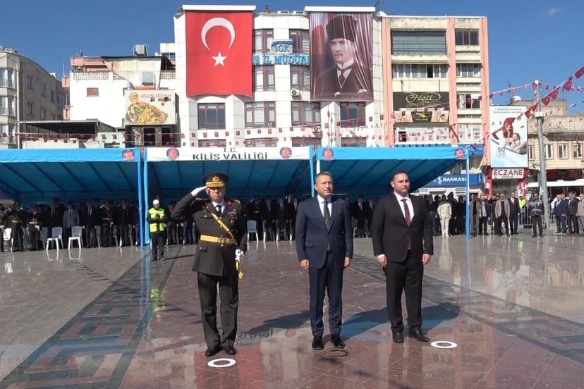 Cumhuriyet Meydanı’nda Atatürk Anıtı’na çelenk sunulmasıyla başlayan törende, saygı duruşunda bulunulup İstiklal Marşı okundu. Törende, Kilis 7 Aralık Üniversitesi Dr. Öğretim Üyesi Mehmet Bozaslan tarafından Mustafa Kemal Atatürk’ün 28 Ekim 1918’de 7. Ordu Komutanı olarak Suriye üzerinden Kilis’e gelişi anlatıldı.