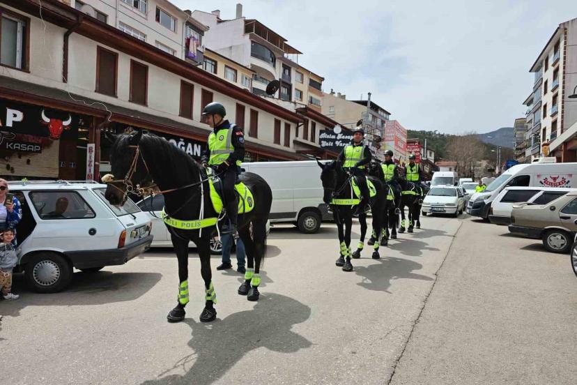 Atlı Polis ekiplerine Kızılcahamam’da yoğun ilgi