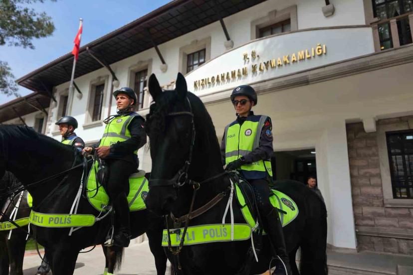Huzur ve güvenliğin sağlanması amacı ile devriye gezen atlı birlikler, Kızılcahamam’da yer alan Soğuksu Milli Parkı’nda ve ilçe merkezinde vatandaşlarla bir araya geldi. Cadde ve parklarda devriye gezen ekipler, hem güvenliğe katkı sağladı hem de ilçe sakinlerinin ilgi odağı oldu.