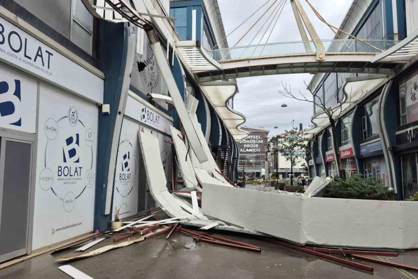 İstanbul Avcılar’da şiddetli fırtınada bir iş yerinin çatısından uçan parçalar, çevredeki iş yerlerinde büyük hasara neden oldu.
